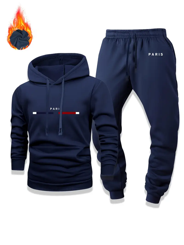 2pcs Comfortable Men’s Paris Print Hooded Sweatsuit Set